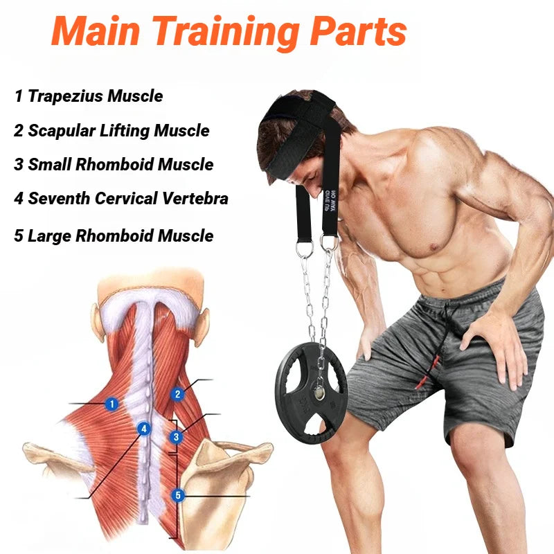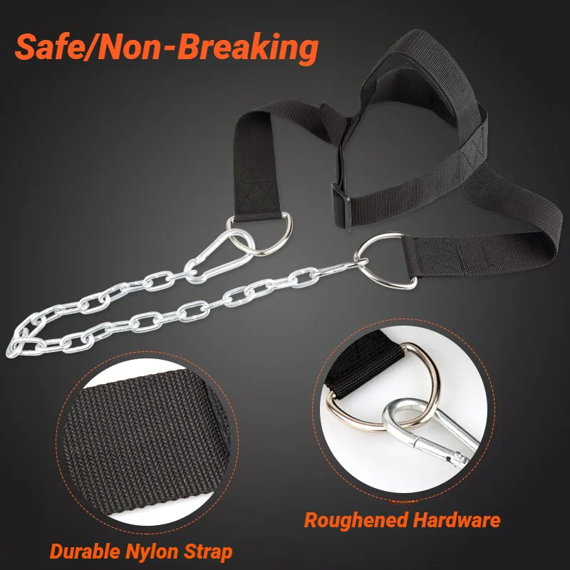 Head Neck Iron ChainTraining Harness Exercise Cervical Spine Strap Adjustable Power Gym Fitness Weight Bearing Cap Socket Device